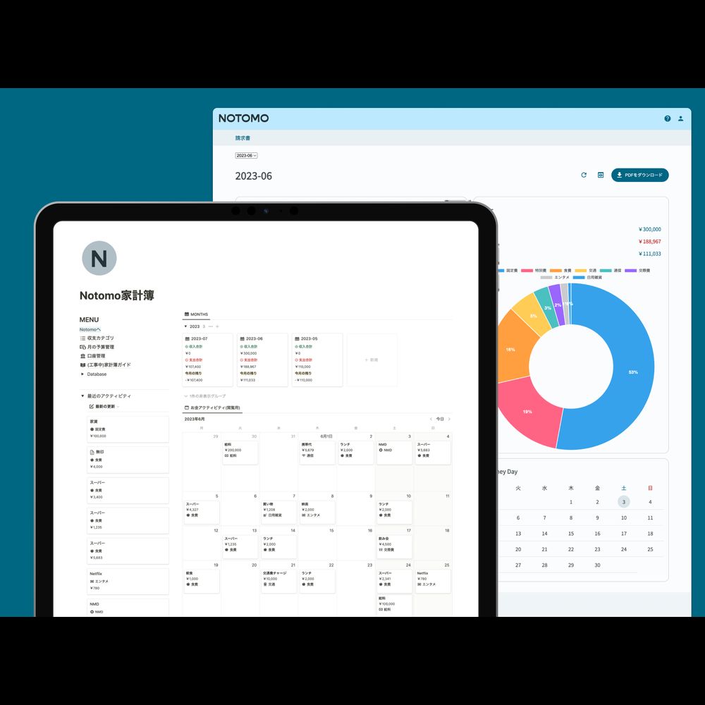 Notomo家計簿は、あなたのライフスタイルに合わせてカスタマイズでき、簡単に楽しく収入と支出を記録できます。より効率的に予算管理と節約をし、夢や目標を実現するためにお金を味方につけましょう! NotionとNotomoが連携して、家計の振り返りや、PDF出力ができます。