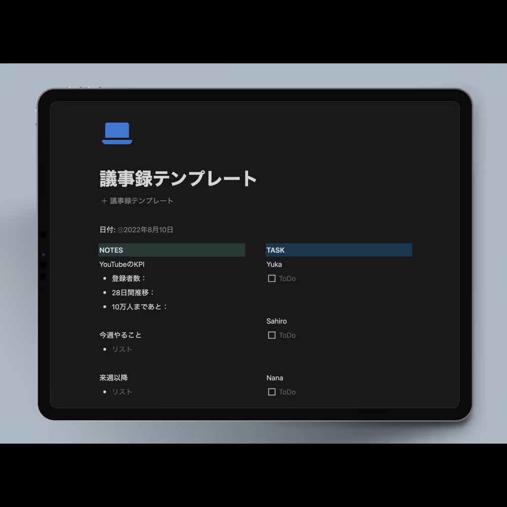 効率的に議事録を取るために、テンプレートボタンを活用してみましょう! #まいにちNotion EP19で紹介したテンプレートです。https://youtu.be/I2wzlWC-XvM