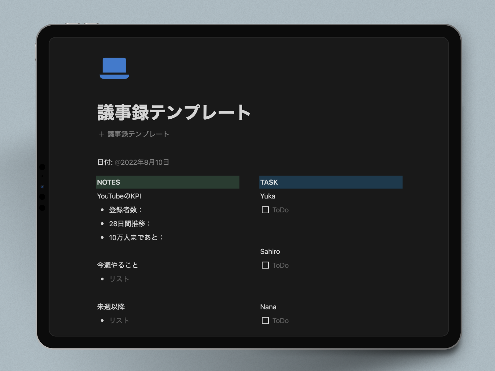 効率的に議事録を取るために、テンプレートボタンを活用してみましょう! #まいにちNotion EP19で紹介したテンプレートです。https://youtu.be/I2wzlWC-XvM